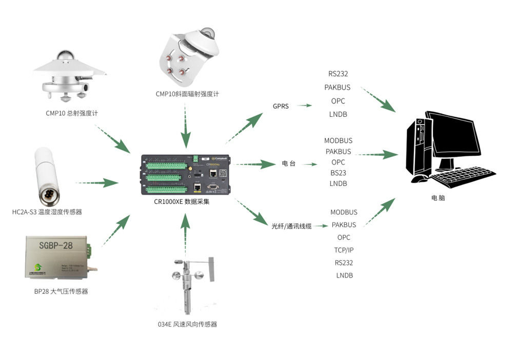 系 统 配 置 图 :注:气象传感器均可根据测量要素进行选配和选型。